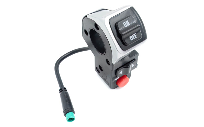 Αυτός ο διακόπτης πολλαπλών λειτουργιών έχει σχεδιαστεί για να βελτιώνει την ασφάλεια. Βρίσκεται σε βολική θέση στο τιμόνι του Hitway H5, παρέχοντάς σας πρόσβαση στα κύρια χειριστήρια του ηλεκτρικό σκούτερ'χωρίς να αποσπάται η προσοχή σας.