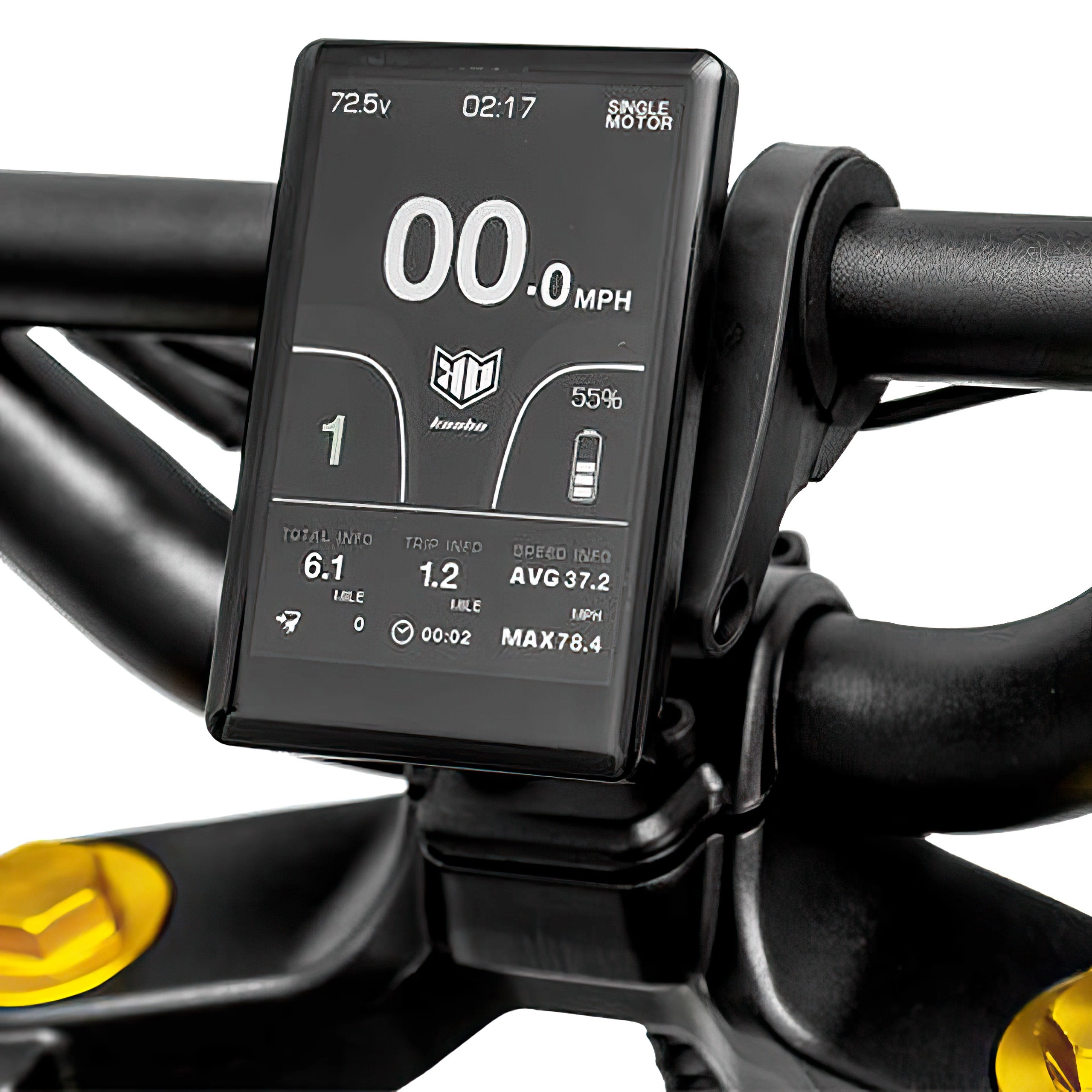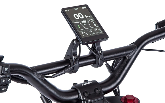 Μείνετε ενημερωμένοι και έχετε τον έλεγχο με την έγχρωμη οθόνη TFT 4,2". Εκεί μπορείτε να βρείτε όλες τις απαραίτητες πληροφορίες, συμπεριλαμβανομένης της ταχύτητας και της υπολειπόμενης εμβέλειας. Με τις λειτουργίες αντιθαμβωτικής προστασίας και αυτόματης εξασθένισης, η προσαρμογή των ρυθμίσεων ή των λειτουργιών είναι εύκολη. Για την ασφάλειά σας, διαθέτει προστασία με κωδικό πρόσβασης. Το ευαίσθητο γκάζι αντίχειρα εξασφαλίζει λεπτή διαμόρφωση της ταχύτητας.