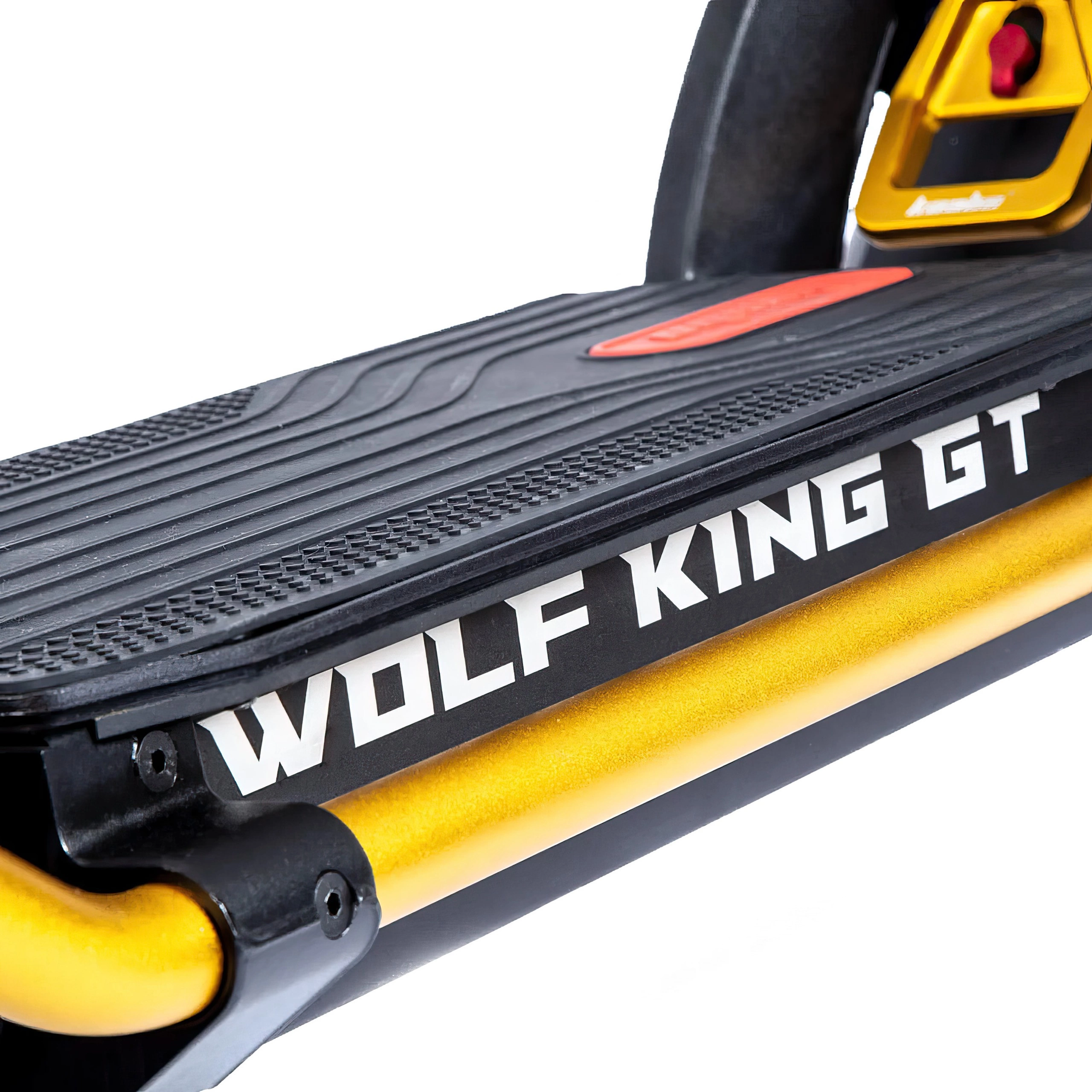 Ο χώρος δεν αποτελεί πρόβλημα στο Wolf King GT Pro. Το μεγάλο του πλατφόρμα σας επιτρέπει να στέκεστε άνετα, χωρίς να προκαλεί κόπωση ακόμα και όταν απολαμβάνετε μεγαλύτερες διαδρομές. Με 8" απόσταση από το έδαφος, καμία ανωμαλία δεν θα σας επιβραδύνει. Το ηλεκτρικό σκούτερ προσφέρει μια πινελιά εξατομίκευσης με τις δύο χαρακτηριστικές επιλογές χρωμάτων του. Για όσους προτιμούν μια κλασική εμφάνιση, η μαύρη και κόκκινη παραλλαγή είναι ιδανική. Αν θέλετε να ξεχωρίζετε, η χρυσή επιλογή είναι μια εντυπωσιακή επιλογή, που δίνει στη βόλτα σας ένα μοναδικό στυλ.