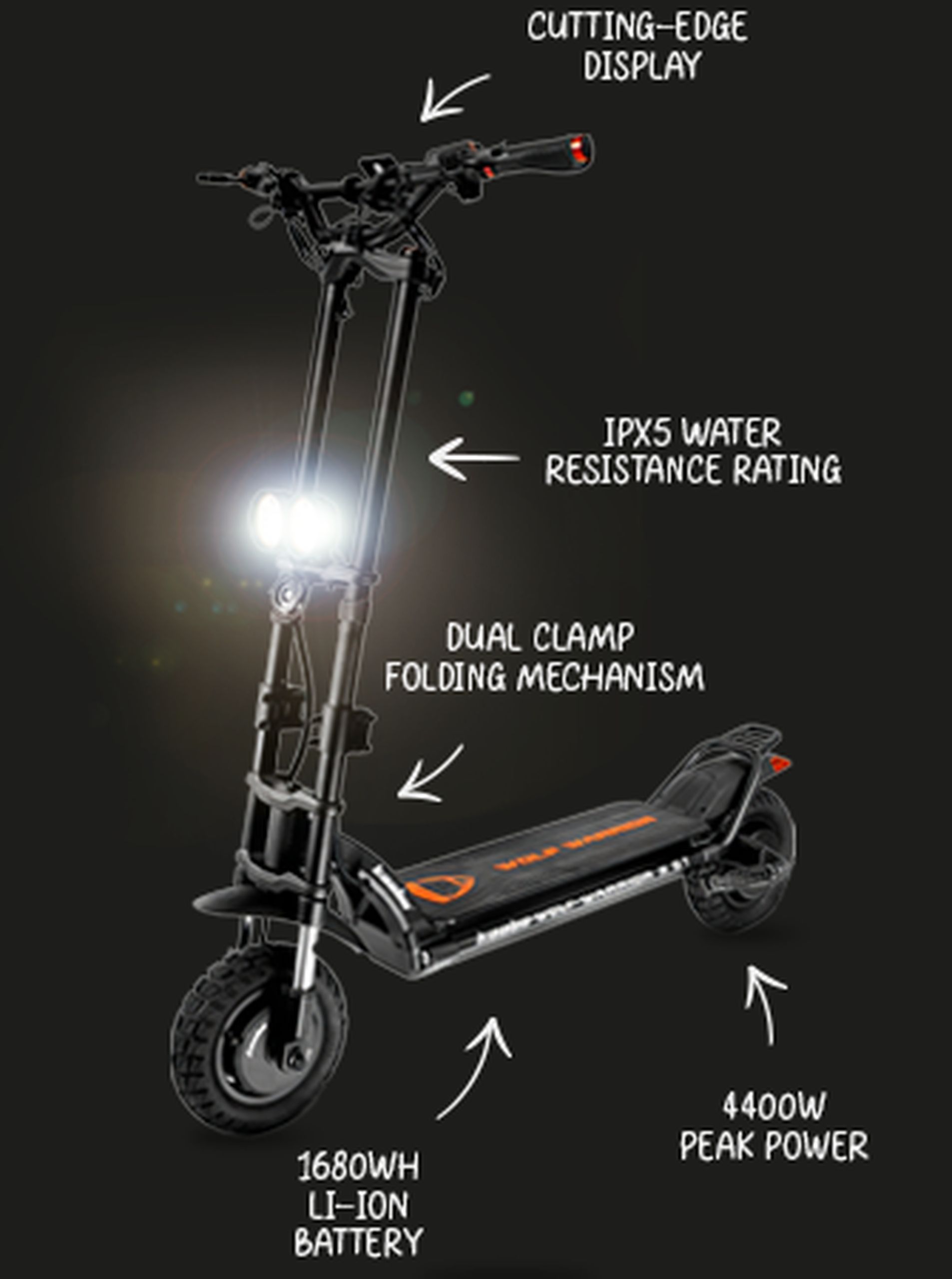 Μοναδικό χαρακτηριστικό του Kaabo Wolf Warrior X GT είναι ο μηχανισμός διπλής σύσφιξης, ένα χαρακτηριστικό που ξεχωρίζει και απλοποιεί τη διαδικασία αναδίπλωσης του ηλεκτρικό σκούτερ για μεταφορά ή αποθήκευση.