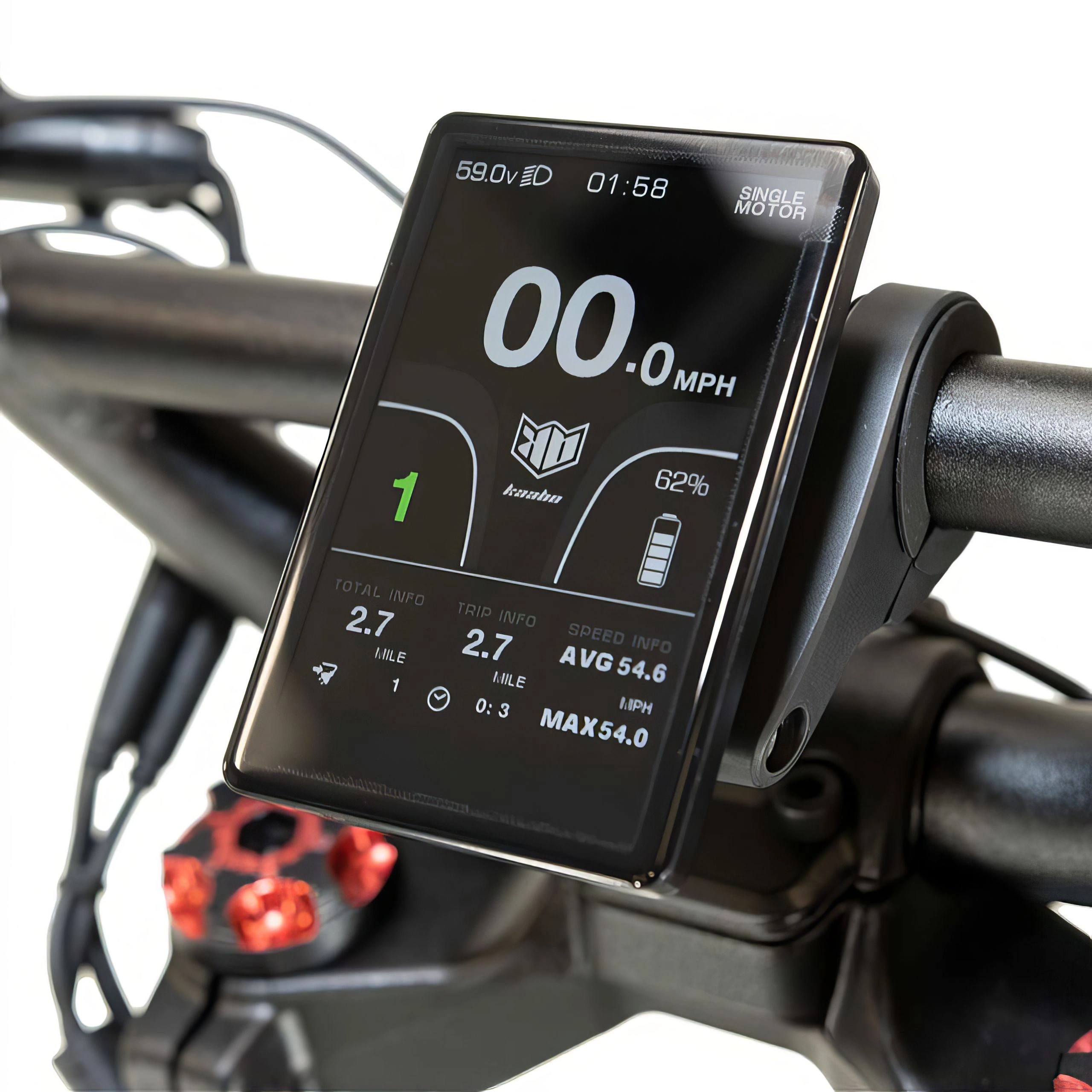 Το Kaabo Wolf Warrior X GT διαθέτει μια αντιθαμβωτική οθόνη TFT 4,2", θέτοντας νέα πρότυπα στις διεπαφές οδηγός. Είναι πολύ μεγαλύτερη από τις συμβατικές οθόνες, παρέχοντας σαφή και εύκολη πρόσβαση σε κρίσιμες πληροφορίες οδήγησης. Σε κεντρική θέση στο τιμόνι, αυτή η οθόνη επιτρέπει την εύκολη παρακολούθηση της ταχύτητας, της κατάστασης της μπαταρίας και άλλων ζωτικών δεδομένων.