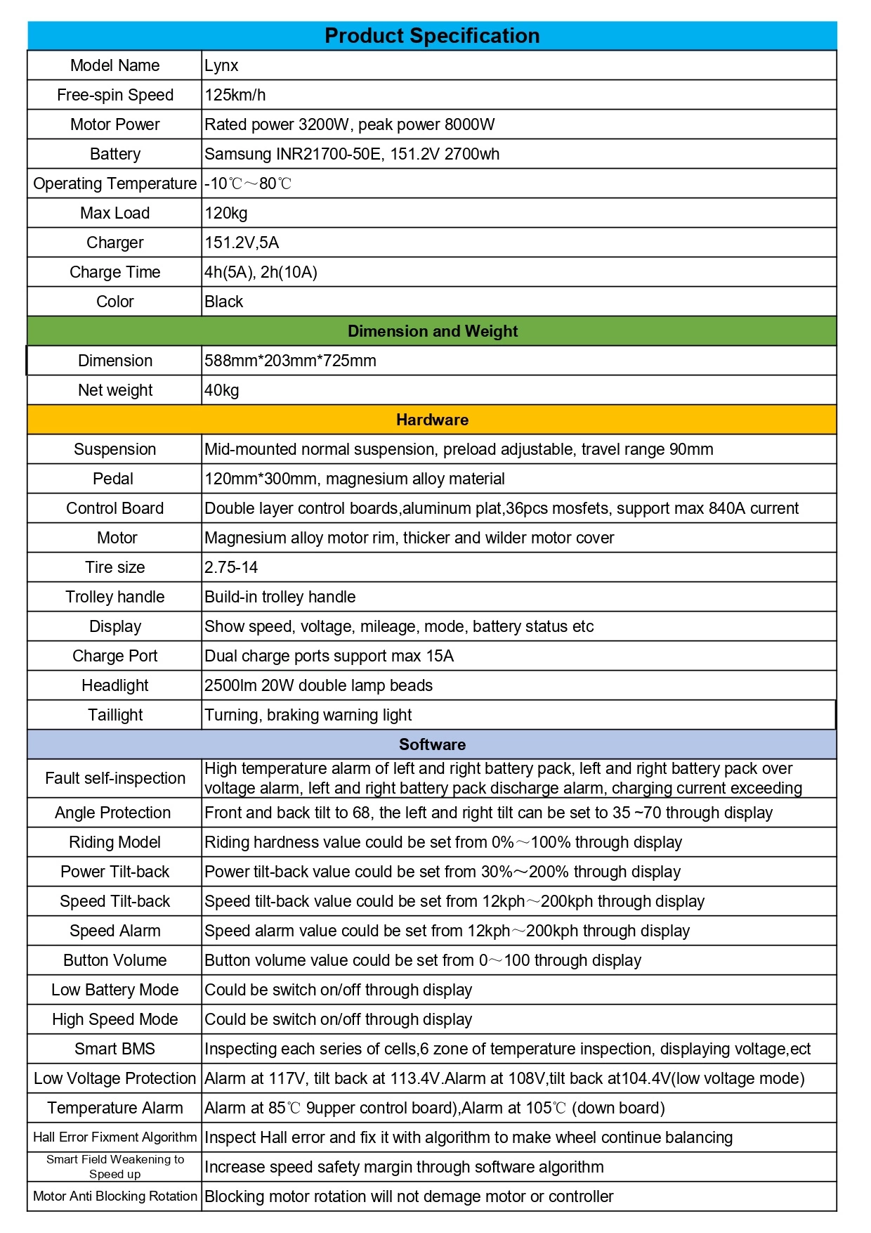 Με μέγιστη ταχύτητα ελεύθερης περιστροφής 77 mph (125 km/h) και ισχύ κινητήρα που φτάνει τα 8000W, το Lynx είναι κατασκευασμένο για τους λάτρεις της ταχύτητας