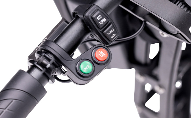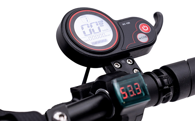 Το Machine Fox ηλεκτρικό σκούτερ διαθέτει μια ολοκληρωμένη οθόνη που δείχνει την ταχύτητα, τις λεπτομέρειες του ταξιδιού και τη στάθμη της μπαταρίας. Έχετε τη δυνατότητα εναλλαγής μεταξύ 3 τρόπων λειτουργίας οδήγησης. Ο πίνακας πάνελείναι εξοπλισμένος με θύρα USB για την επαναφόρτιση των προσωπικών σας συσκευών. Το ευαίσθητο γκάζι σκανδάλης απαιτεί ελάχιστη προσπάθεια για τη διαχείριση της ταχύτητας με ακρίβεια.
