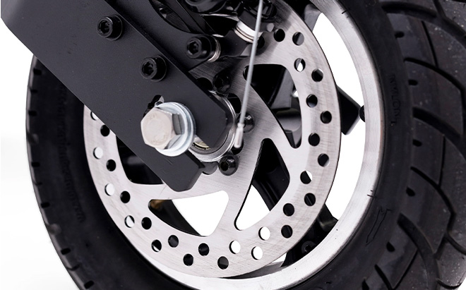 εξερευνήστε το ηλεκτρικό Machine X Transporter ηλεκτρικό σκούτερ 's 1800W peak power motor, που φιλοξενεί αβίαστα έως και 150 kg (330 lbs). Εξασφαλίζει ομαλή οδήγηση με μπροστινή και πίσω ανάρτηση, ενώ πληροί τα πρότυπα ασφαλείας της αυτοκινητοβιομηχανίας μέσω των διπλών δισκόφρενων.