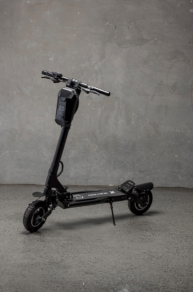 Αυτό το τρομερό ηλεκτρικό ηλεκτρικό σκούτερ, που κινείται από έναν κινητήρα μέγιστης ισχύος 1800W, υποστηρίζει με τόλμη βάρος έως 150 kg (330 lbs ). Σε συνδυασμό με την μπροστινή και την πίσω ανάρτηση, το Machine X Transporter παρέχει ομαλή και ισορροπημένη οδήγηση. Τηρεί τα πρότυπα της αυτοκινητοβιομηχανίας, παρέχοντας ασφάλεια με τα διπλά δισκόφρενα.