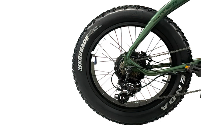 Η ενσωμάτωση ελαστικών Kenda 20" x 4.0 fat με μεγάλη επιφάνεια επαφής εξασφαλίζει αυξημένη σταθερότητα και πρόσφυση σε διάφορες επιφάνειες. Αυτά τα ελαστικά συμπληρώνονται από ζάντες διπλού τοιχώματος από κράμα για αντοχή και ανθεκτικότητα, καθιστώντας το ποδήλατο ιδανικό τόσο για βόλτες στην πόλη όσο και για περιπέτειες εκτός δρόμου.